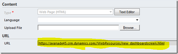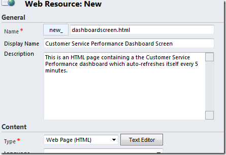 2. Create your HTML Web Resource to host the dashboard